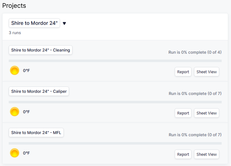 For instance, a Project may consist of one cleaning run, one caliper/geometry tool run and one inline inspection (ILI) tool run.